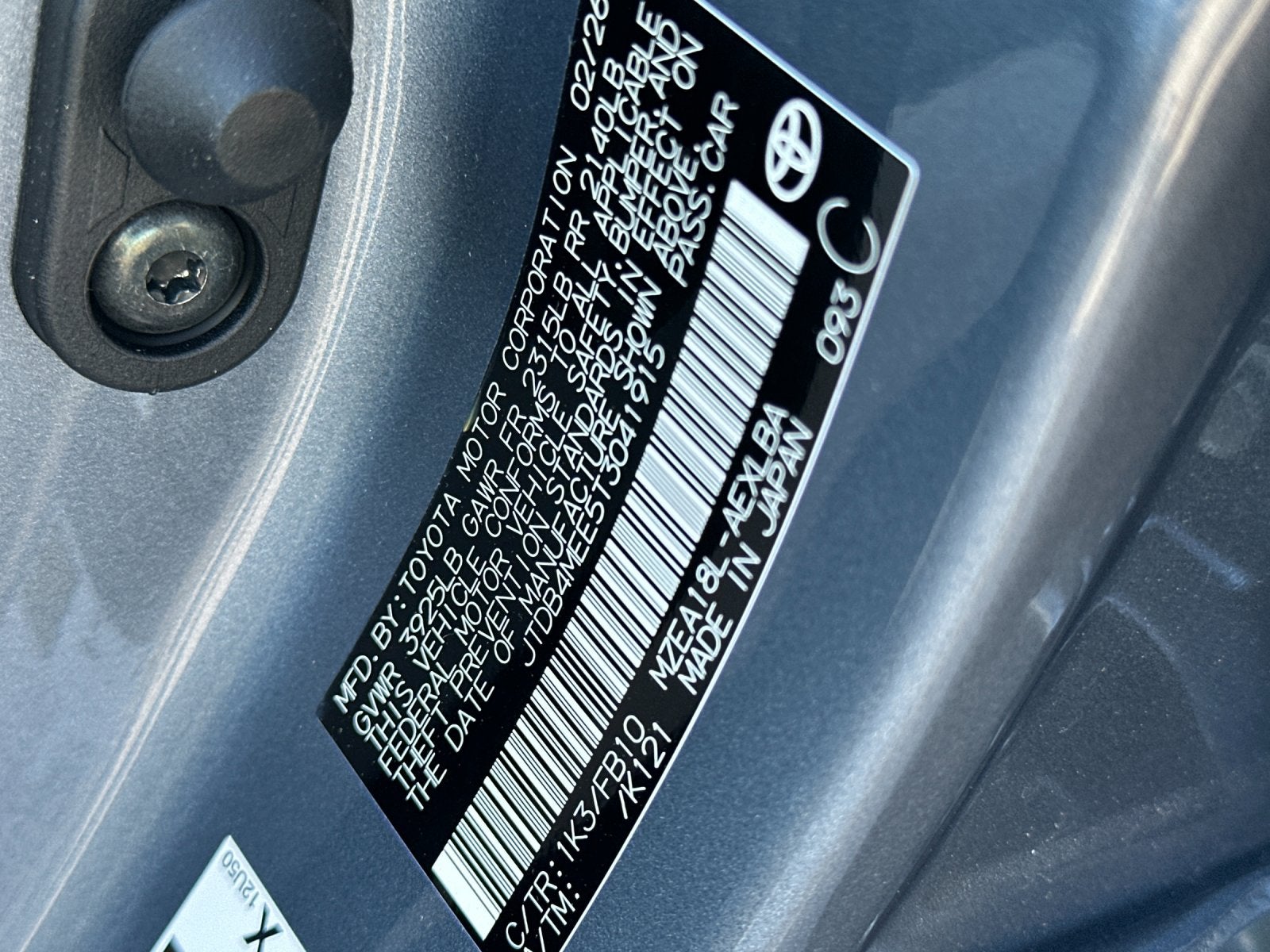 - Vehicle Name: Toyota Corolla