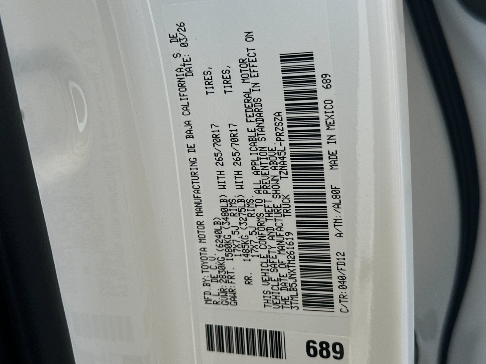 - Vehicle Name: Toyota Tacoma 4WD