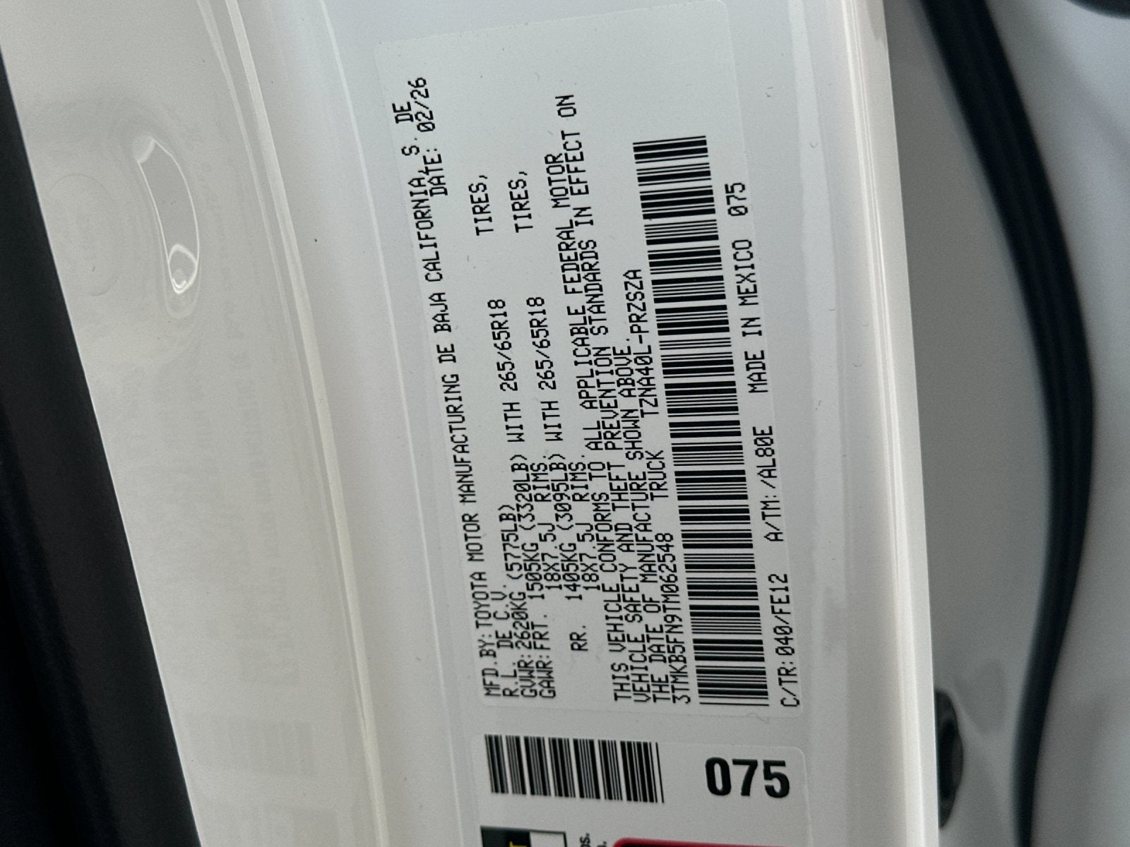 - Vehicle Name: Toyota Tacoma 2WD