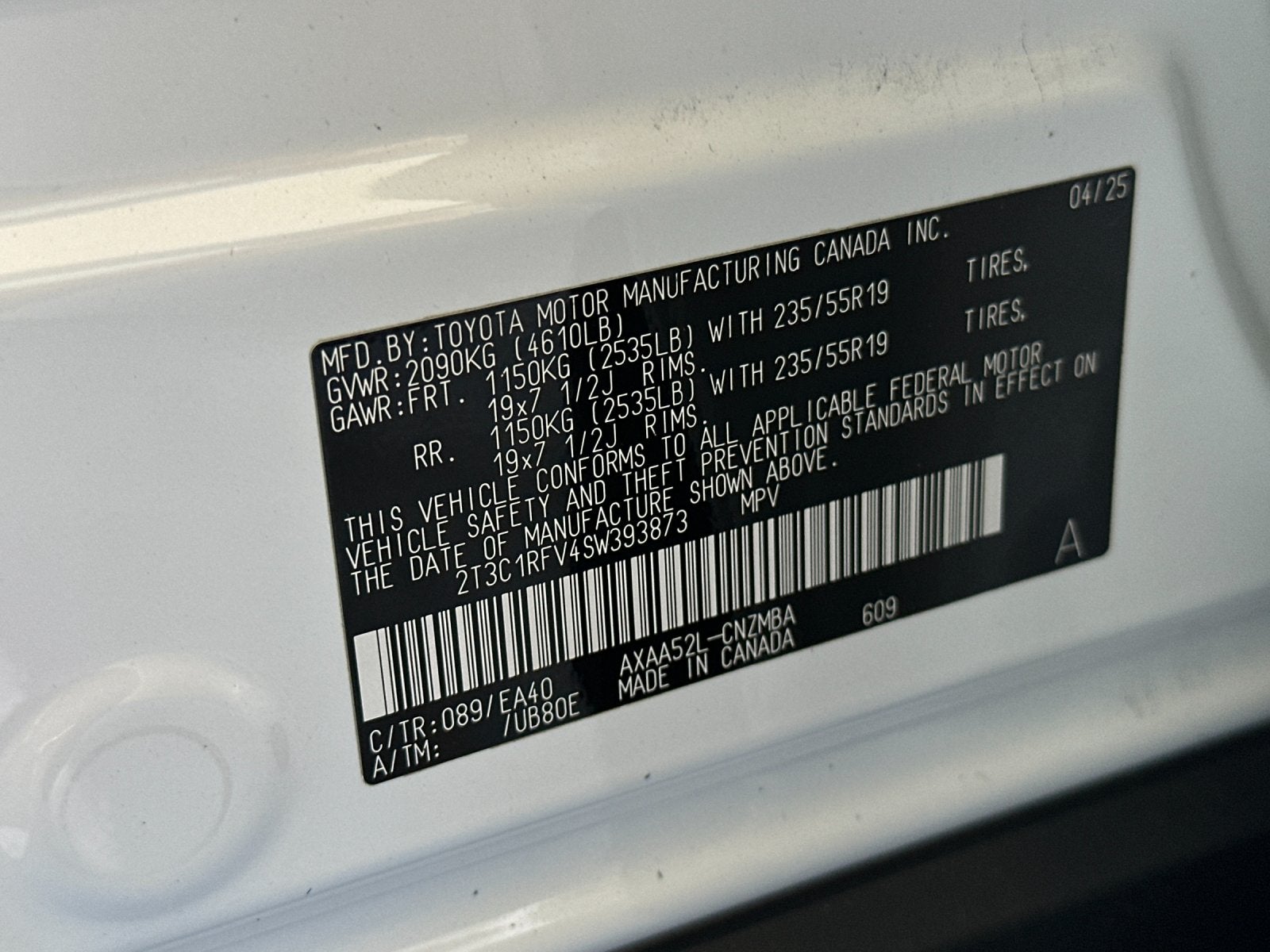 - Vehicle Name: Toyota RAV4